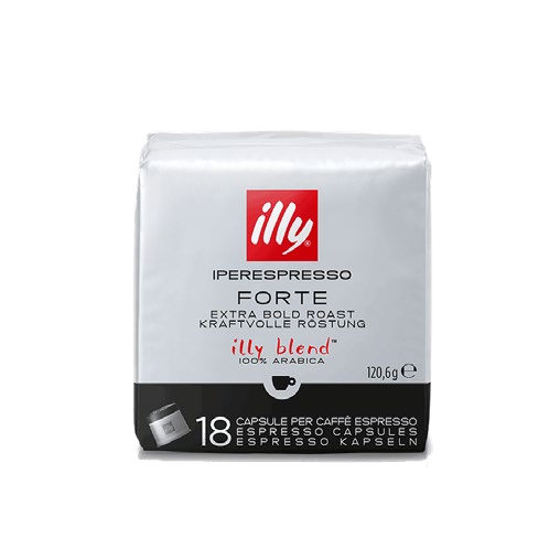 Le café en capsules torréfié FORTE, issu de l’unique mélange Illy 100 % Arabica, se caractérise par un goût de chocolat noir et un arôme de pain grillé. Pour les amateurs d’un goût riche et intense.